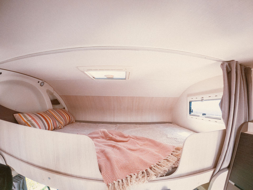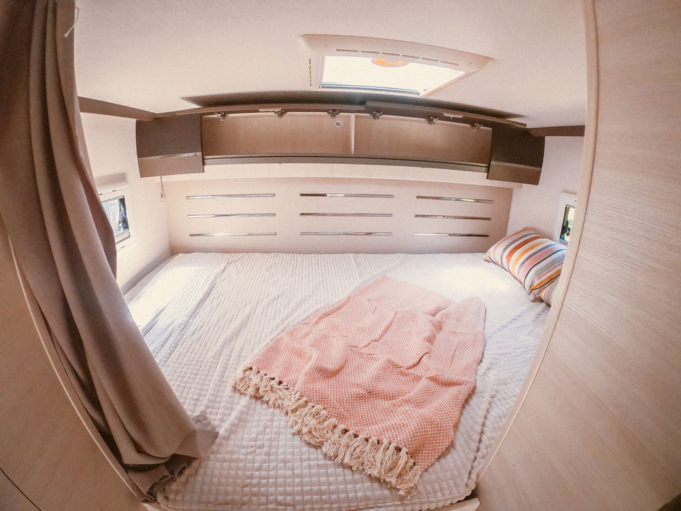 ABS, ESP, tempomat, driver and passenger side air-bag, rear air suspension, LED outdoor and indoor lightning, Bluetooth loud speaker in driver's cab, heating and air conditioning, boiler, gas stove, microwave oven, fridge, freezer, kettle, TV (HDMI input), panorama skylight, mosquito net and blackout curtain on all windows and on front door, built-in canopy, rear bike rack(4 bikes), extra large garage, built-in safe